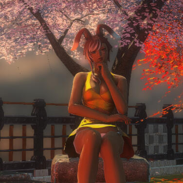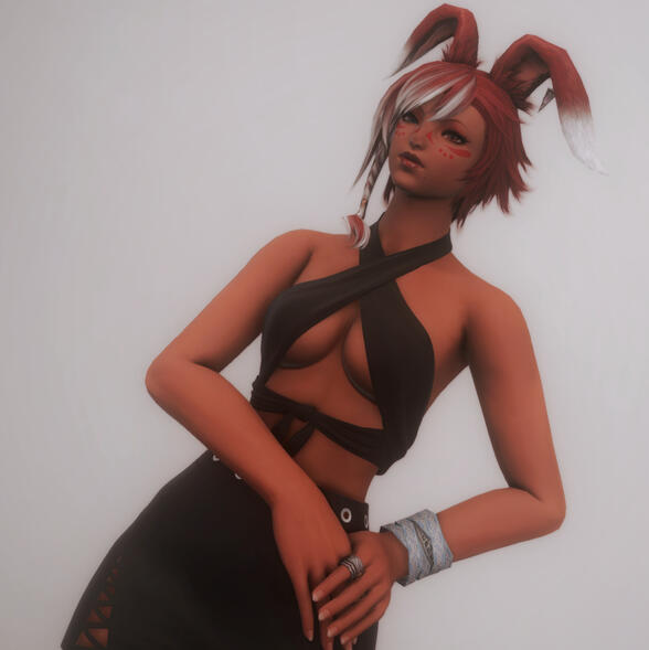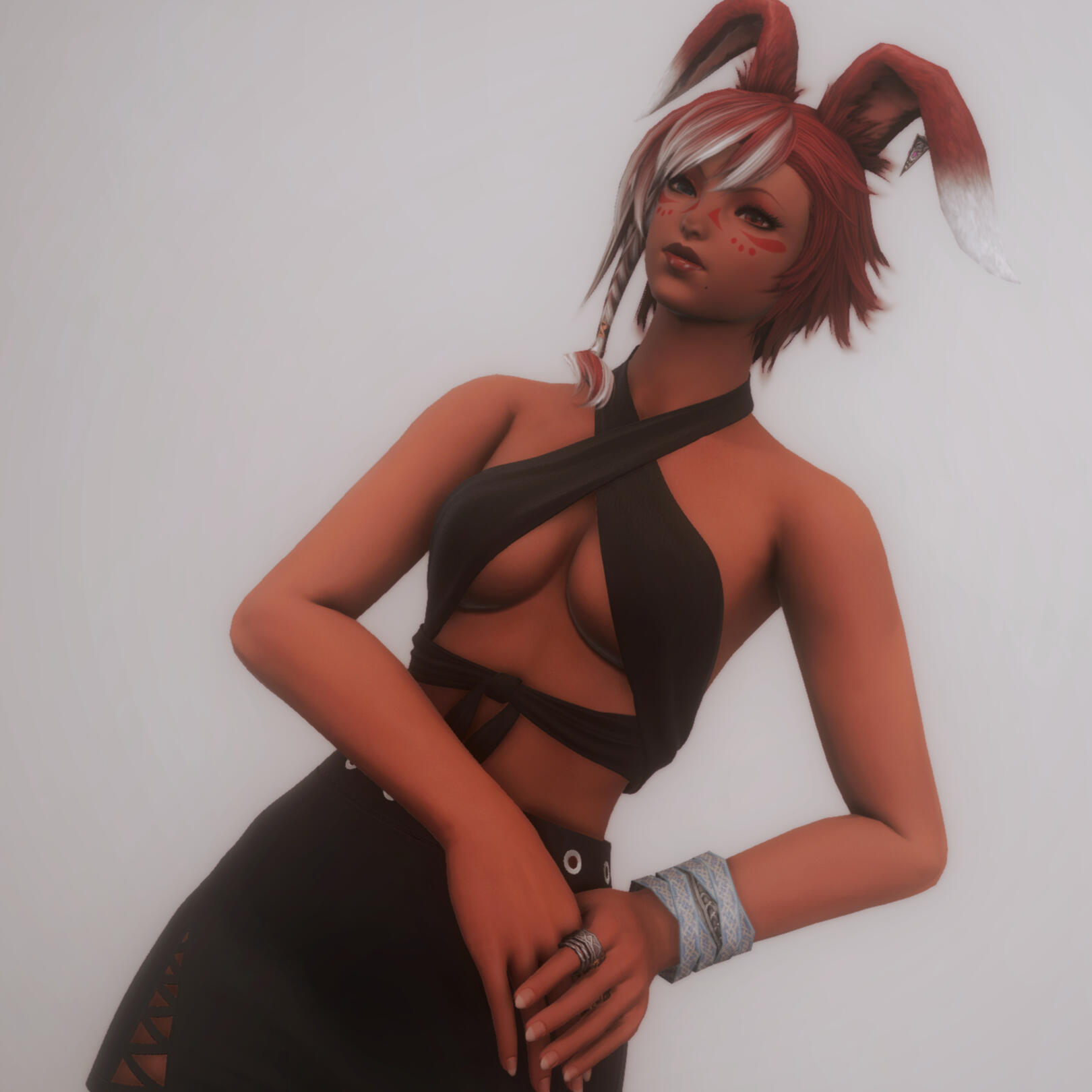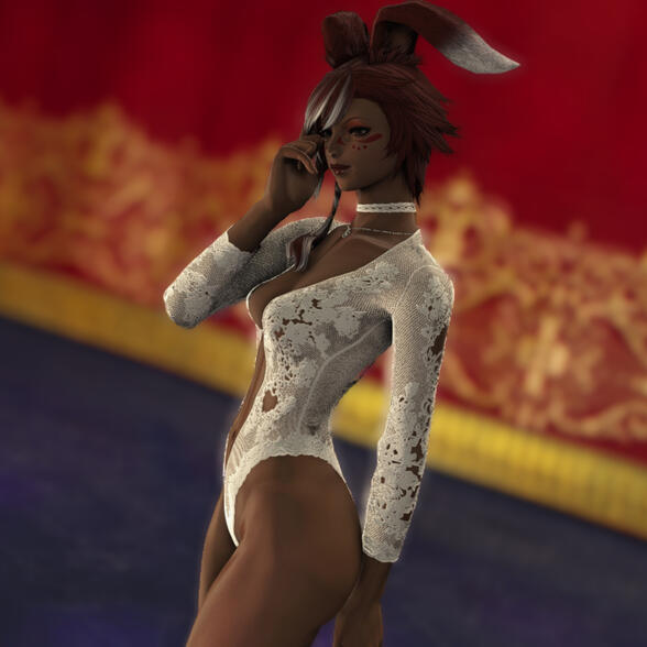 She was born to a Tribe that the closest translation from Viera is Sanctuary. Her tribe's females is blessed by Nophica. So as soon as the females reach maturity, they begin to produce milk. She was born with the guardian of Rhalgar, and she was destined to cause great destruction. However not wanting to believe this was her fate, she left to the nearby lands she heard of, The Dancers of Thavnair. She heard of the dancers from a local viera warrior, having married someone who she had met in Radz-at-han as a dancer. Seeing how other's danced, she wanted to learn, so she left for Thavnair. Where she learned the ways of dancing from them. She eventually mastered all they had to offer, so she left to find other dances to learn. During her travels she learned to infused her fighting with the dancing, to make very fluid motions. Traveling to the Steppes, and Doma. Before eventually making her way to Gridania, where she made friends with the Scions (or those who would become). She traveled to Limsa and Ul'dah gathering more dances, while also performing for such individuals as; The Cost Del Sol owner guy, and the Sultana herself.